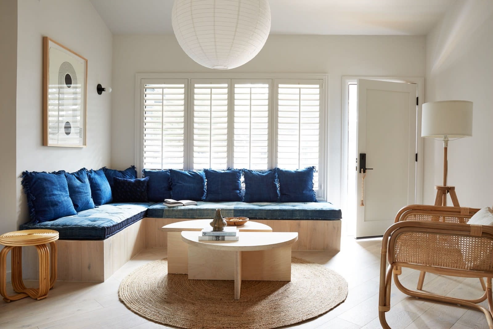 Haus Interior founder and author Nina Freudenberger dreamed up this 25-room hotel on Cambria’s Moonstone Beach to have a Danish seaside feel. Monterey pines dot its deep midnight-hued cladding, but the bright lobby—with its sculptural sofa, woven baskets, jute rugs, and picture windows—reveals a dedication to a chic, easygoing beach life. Baltic birch slats formed headboards, duck canvas became curtains, and indigo-dyed vintage textiles were hand-stitched into cushions for window seats. The bathrooms are their own kind of covetable, with terrazzo countertops, two-tone tiled showers, and even a horse trough turned outdoor tub painted two shades of evergreen. From $429/night.