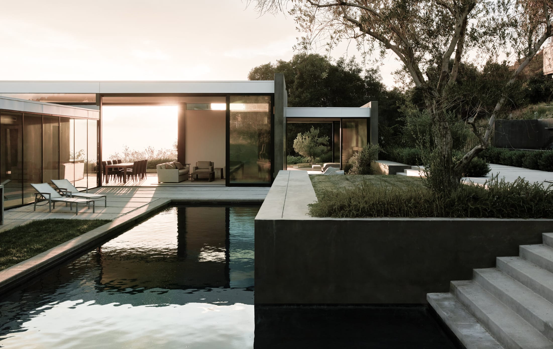 Completed in 2016, this unique design is built to shield the sun while providing seclusion, uninterrupted views, and clean lines.