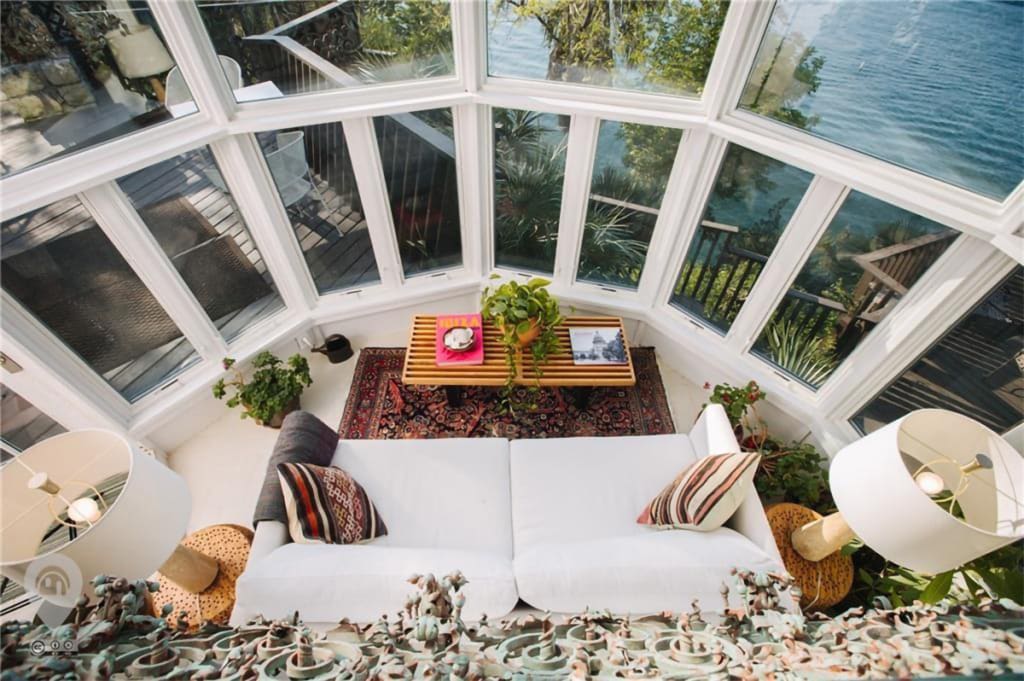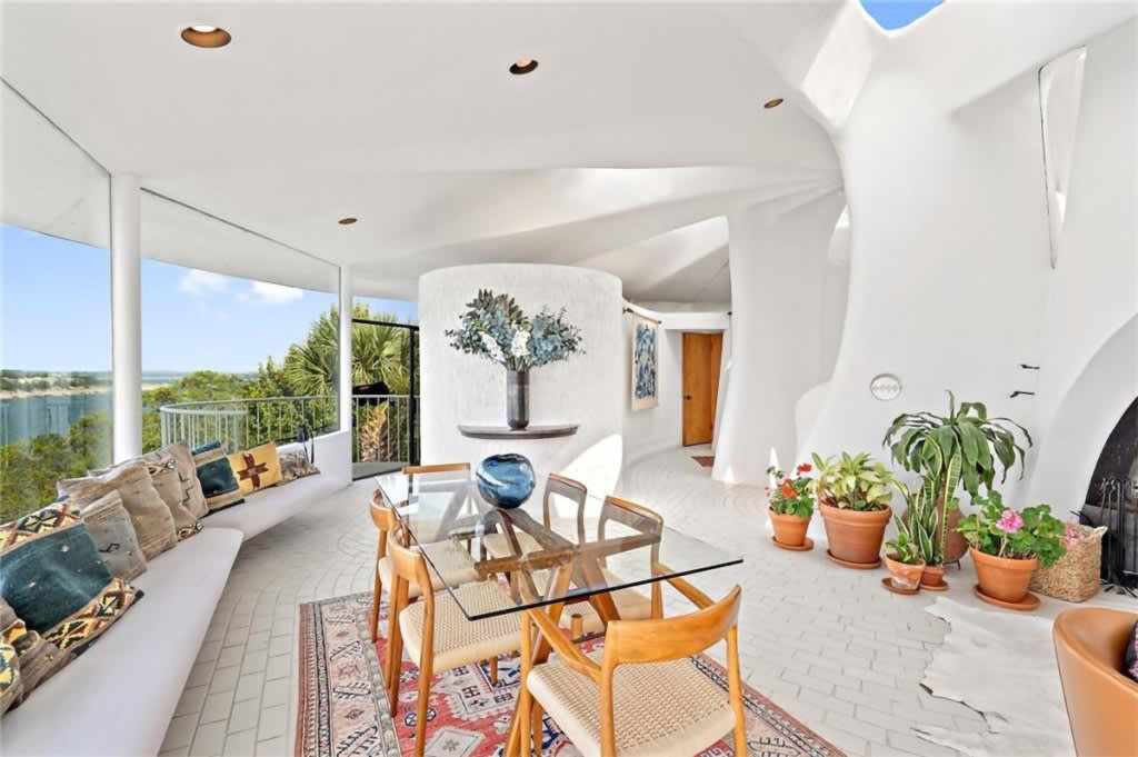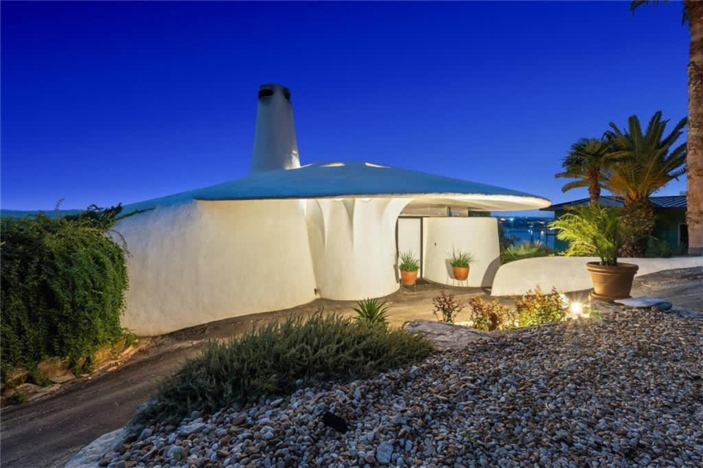 Known as Sand Dollar House, the structure was designed by Frank Lloyd Wright apprentice John Covert Watson and is located on the scenic shore of Lake Travis. The Sand Dollar House is also colloquially called “the Mushroom House.” From the street, it’s easy to see why — the place resembles a little white fungi perched on a high bluff above the lake. From the air, however, the house morphs clearly into a giant sand dollar.