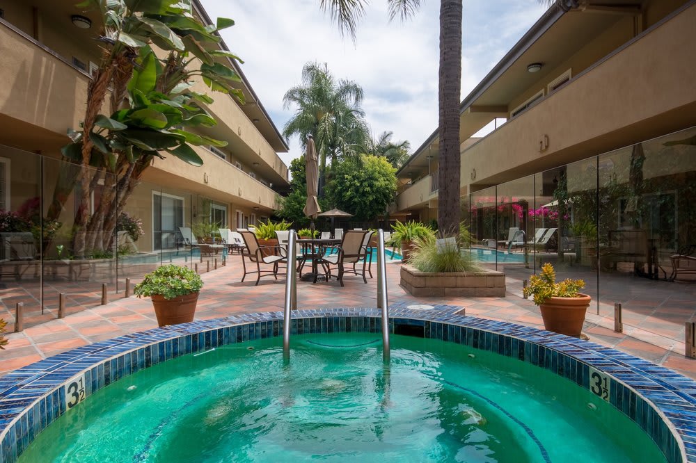Resort style living at 970 Palm. Wonderful 60's mid-century courtyard building featuring a beautiful pool and spa, ideal location in prime West Hollywood. Units are accessible off sunny exterior breezeways viewing the pool and towering palm trees.