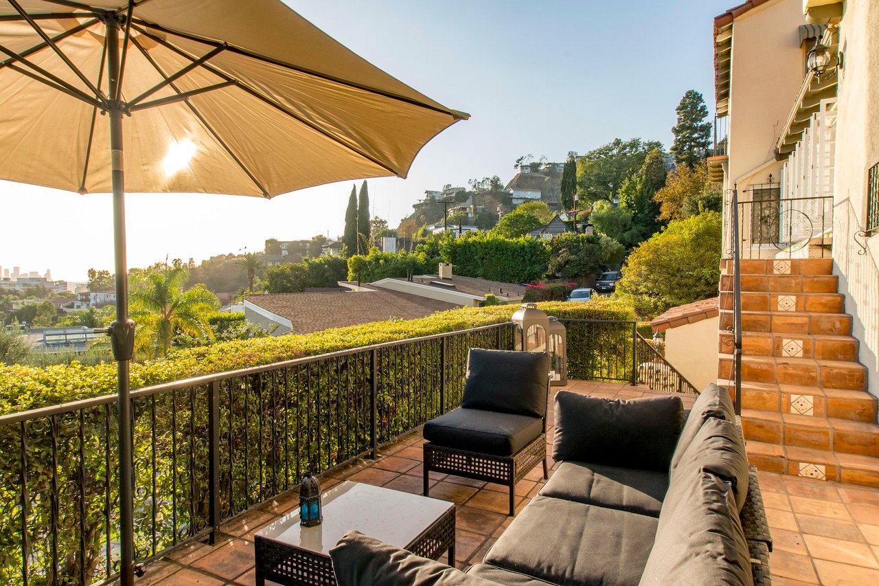 Radiant 1930's Spanish perched just above Chateau Marmont with sweeping views from downtown to the ocean. Grand living room with magnificent unspoiled character details featuring Batchelder tiles, original beamed ceilings and stained glass windows. 3 large bedrooms + ideal home office/den opening to a charming secluded courtyard with fountain. Wonderful outdoor entertaining terrace with views of the whole city. Owner's suite features his & hers walk-in closets, beautifully renovated spa bath, and a romantic balcony with 180 degree views. Formal dining room with picture window and original built-ins. This is an elegant house that lives beautifully and with ease. Direct entry 2 car garage and large laundry/utility area. The ultimate Sunset Strip address, just a short stroll to Sunset Blvd and moments from restaurants, shopping, nightlife and more.